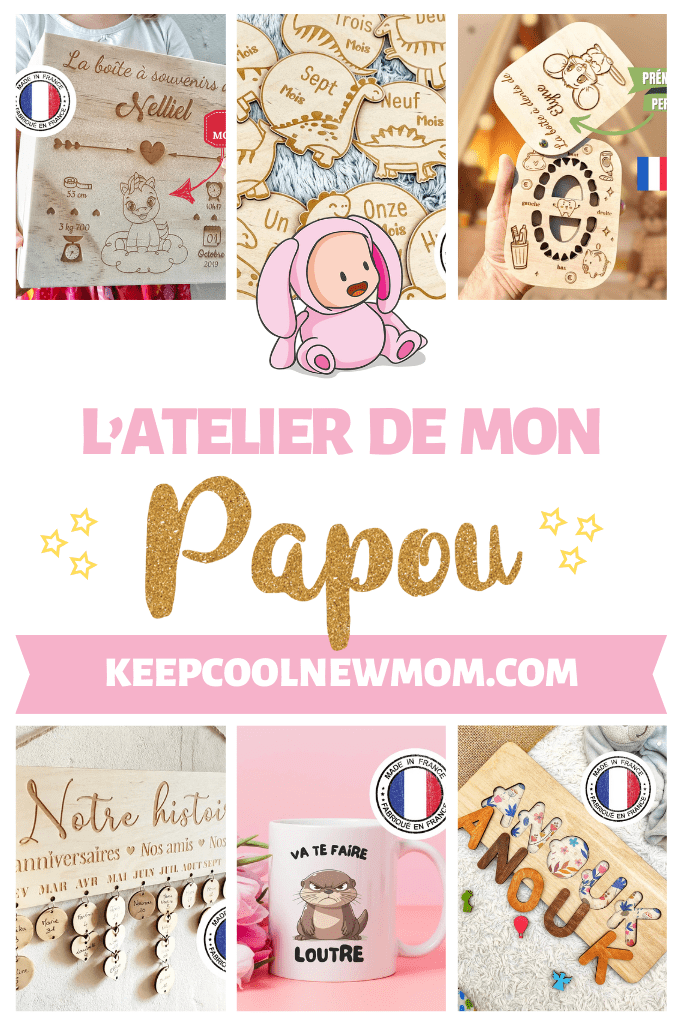 Si tu cherches un cadeau de naissance, de fête des mères, d’anniversaire ou de baby shower qui sort du lot, je te recommande L’atelier de mon Papou les yeux fermés. C’est beau, c’est touchant, c’est unique… bref, un vrai coup de coeur que j’avais très envie de partager avec toi.
